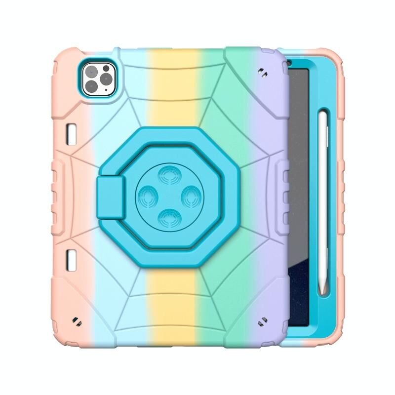 For iPad Pro 11 2022 / 2021 / 2020 Spider Turntable Handle Stress Relief Tablet Case(Gradient Color Blue)