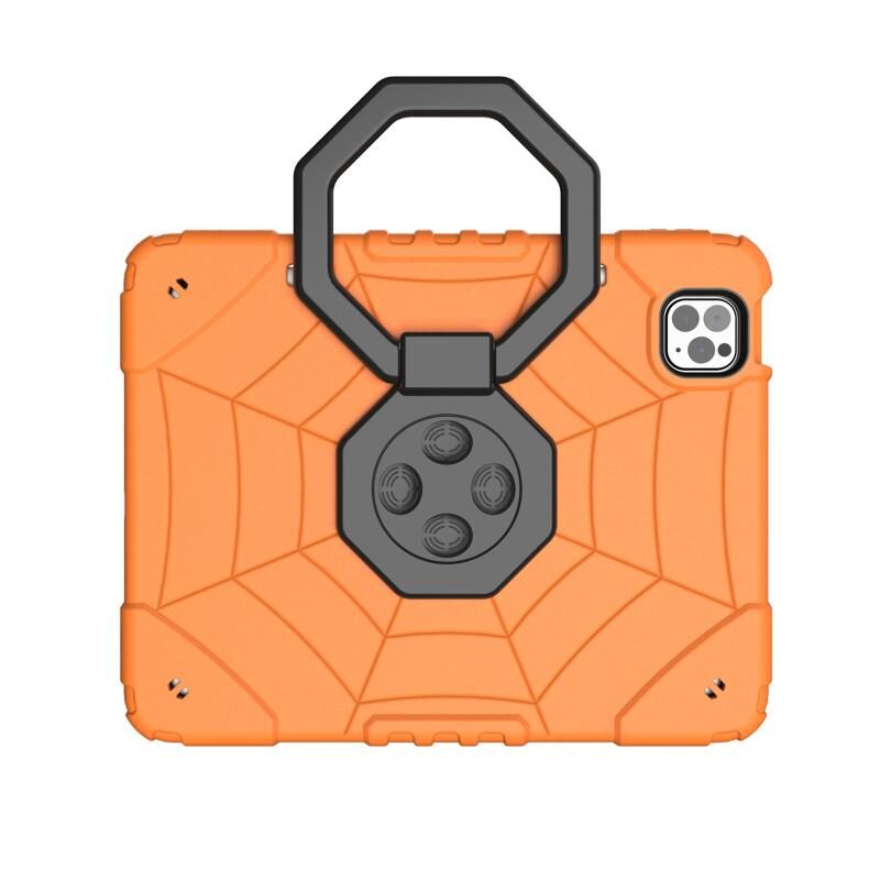 For iPad Pro 11 2022 / 2021 / 2020 Spider Turntable Handle Stress Relief Tablet Case(Orange Black)