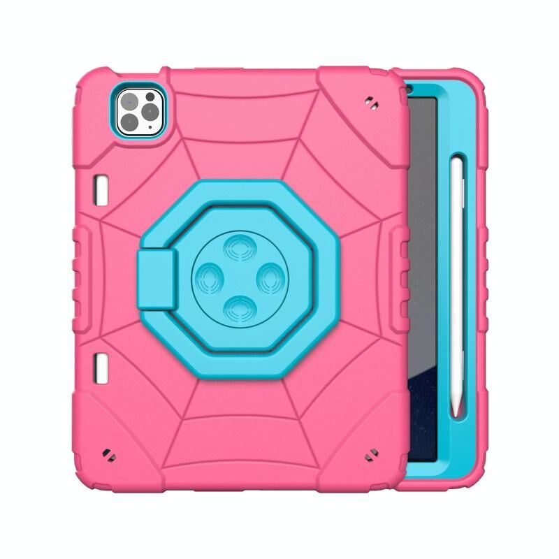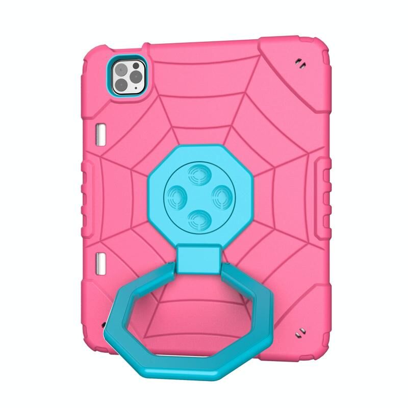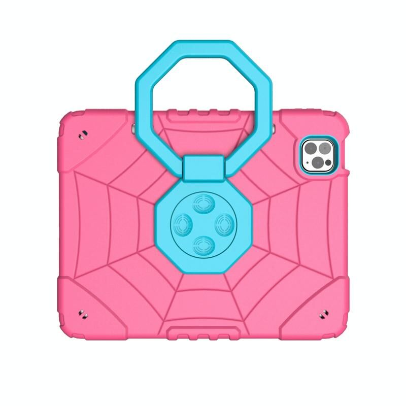 For iPad Pro 11 2022 / 2021 / 2020 Spider Turntable Handle Stress Relief Tablet Case(Rose Red Blue)