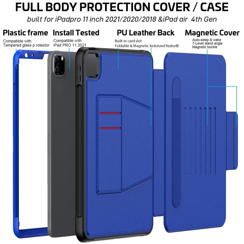 For iPad Pro 11 2022 / 2021 Smart B Magnetic Horizontal Flip Leather Tablet Case with 7-speed Bracket & Card Slots & Pen Slot & Sleep / Wake-up Function(Blue)