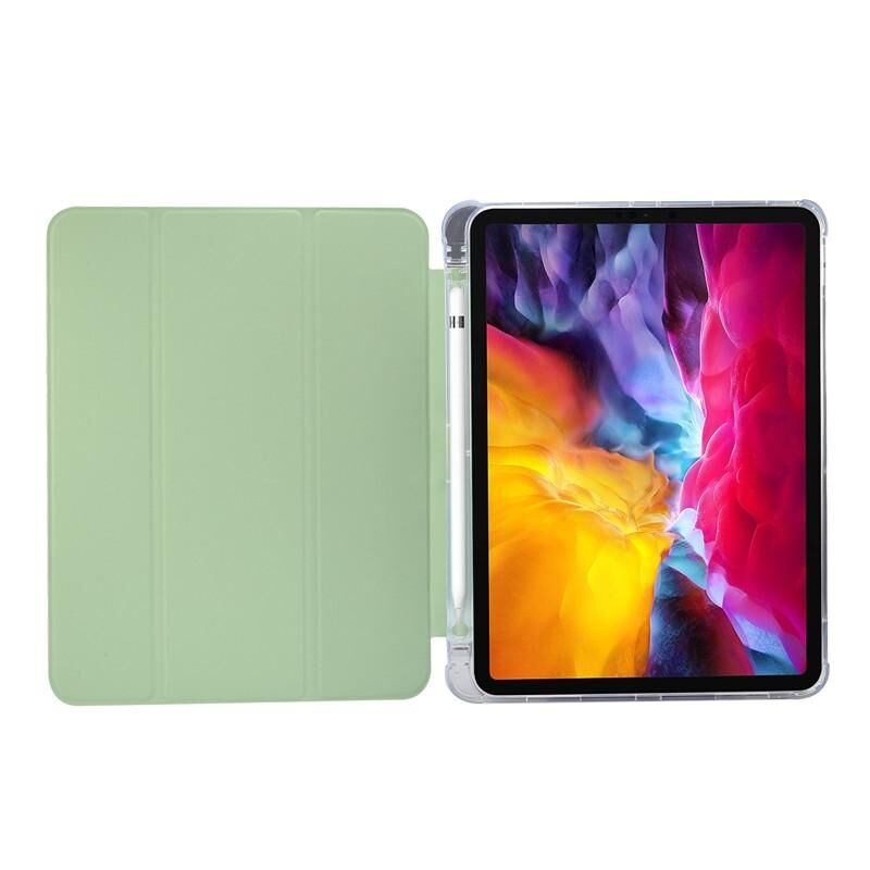 Για iPad Pro 11 2022 / 2021 Τριπλά Διπλούμενη Ηλεκτρική Θήκη Ταμπλέτας με Υφή Πιεσμένου Δέρματος, Οριζόντια, Αντικραδασμική, Διαφανής TPU + PU Δέρμα με Στήριξη & Θήκη Στυλό & Λειτουργία Αφύπνισης / Ύπνου (Σκούρο Πράσινο)