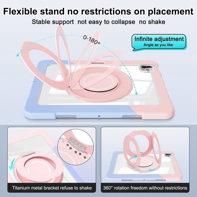 3. Stand Function: Rotation stand that offers multiple angle stands for enjoying the most comfortable keyboard-typing and movie-viewing.