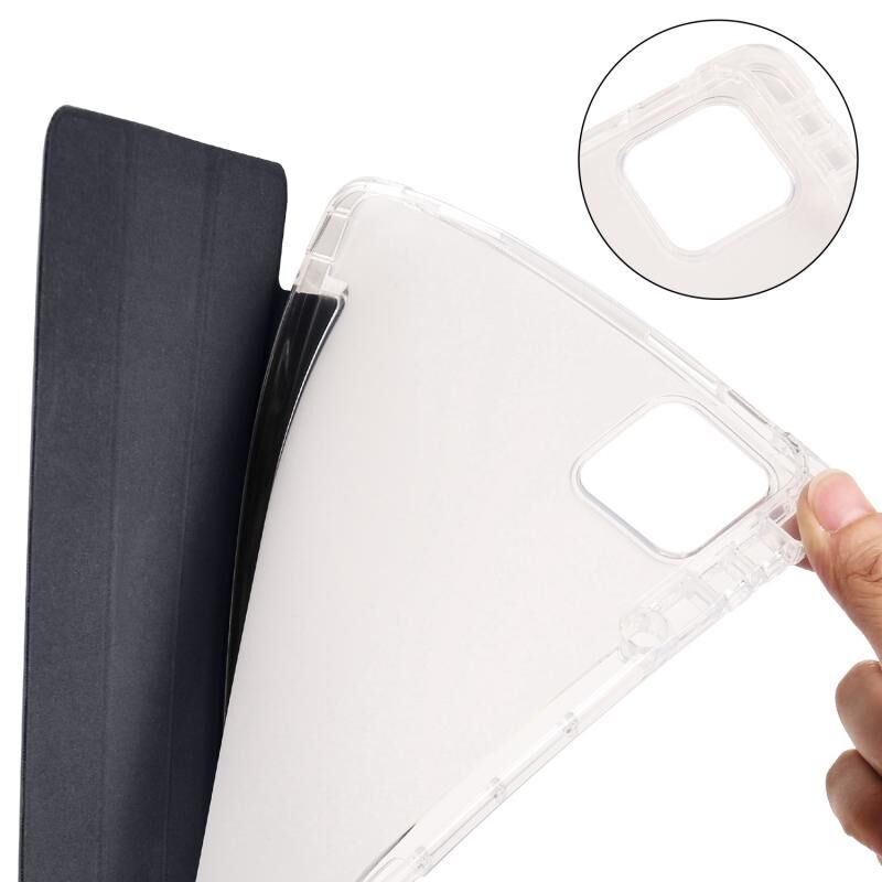 For iPad Pro 11 2024 3-fold Clear TPU Smart Leather Tablet Case with Pen Slot(Black)