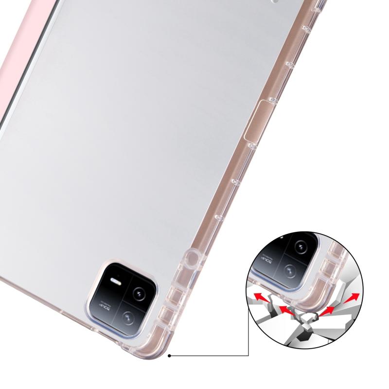 For iPad Pro 11 2024 3-fold Clear TPU Smart Leather Tablet Case with Pen Slot(Sand Pink)