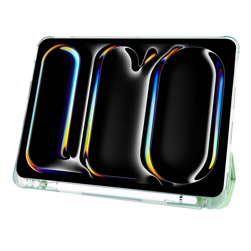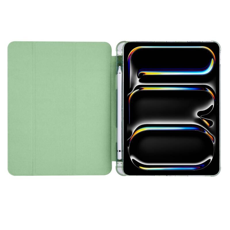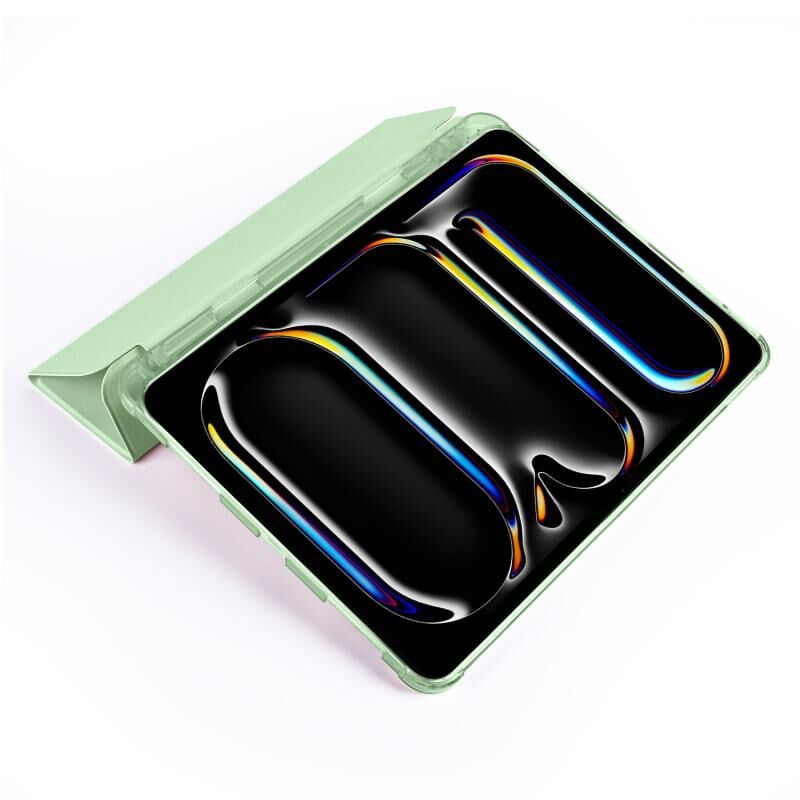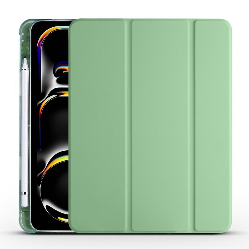For iPad Pro 11 2024 3-fold TPU Leather Smart Tablet Case with Pen Slot(Matcha Green)
