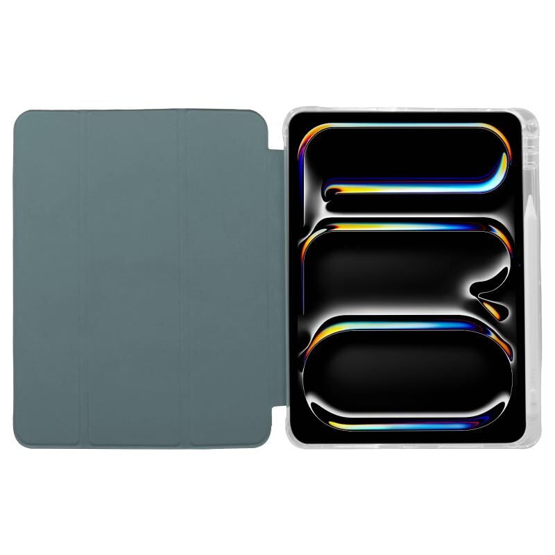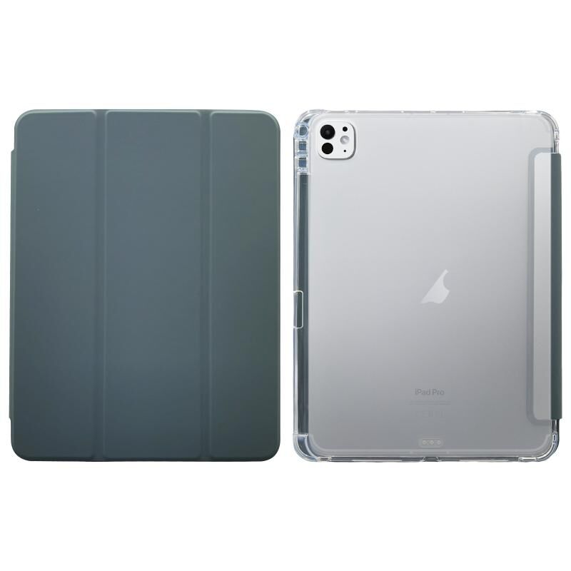 Για iPad Pro 11 2024 3 πτυσσόμενα Ηλεκτρική θήκη για tablet με δερμάτινη υφή δέρματος (βαθύ πράσινο)