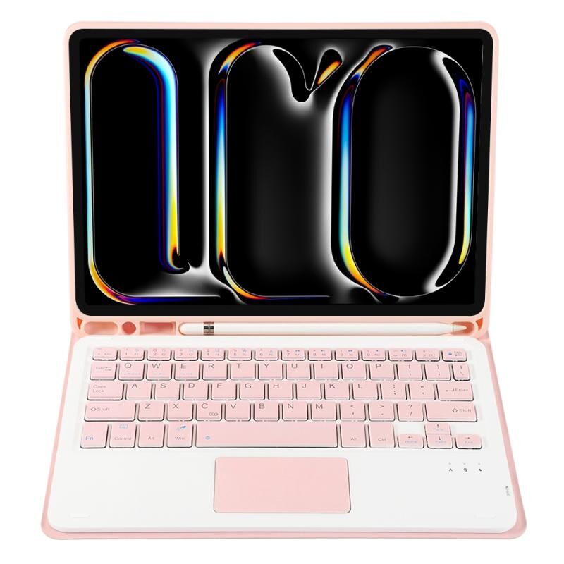 Για iPad Pro 11 2024 A13B-A Θήκη Ταμπλέτας από Δέρμα με Υφή Αμνού, Bluetooth, Αφής, Τετράγωνο Πληκτρολόγιο με Υποδοχή για Στυλό (Μαύρο)