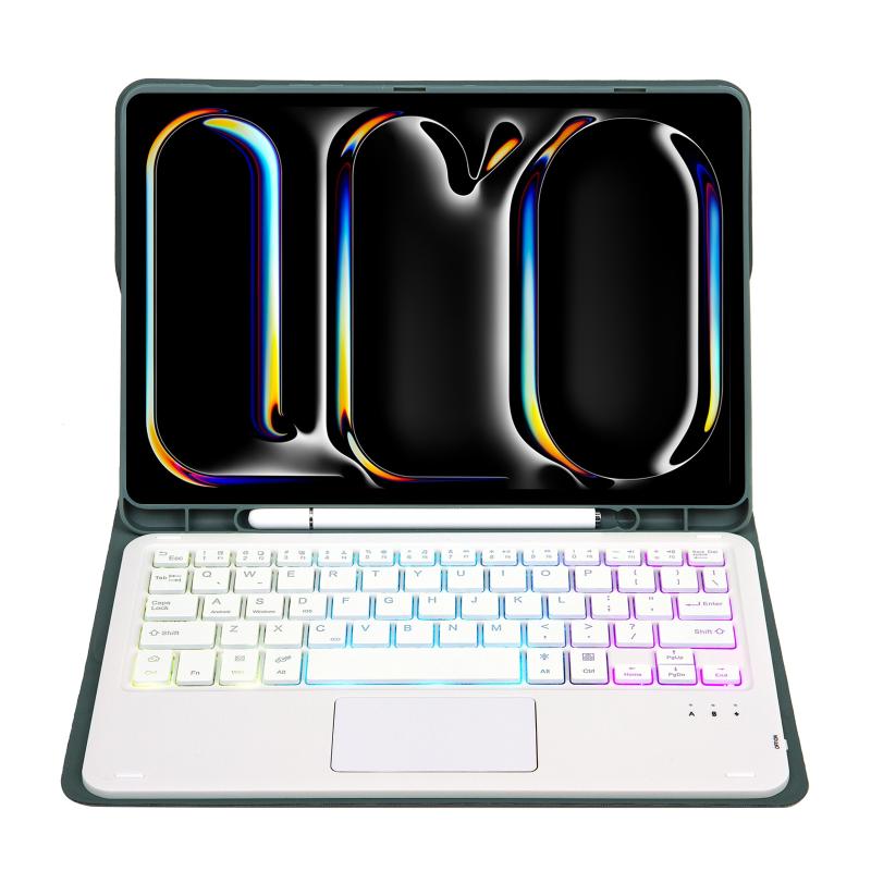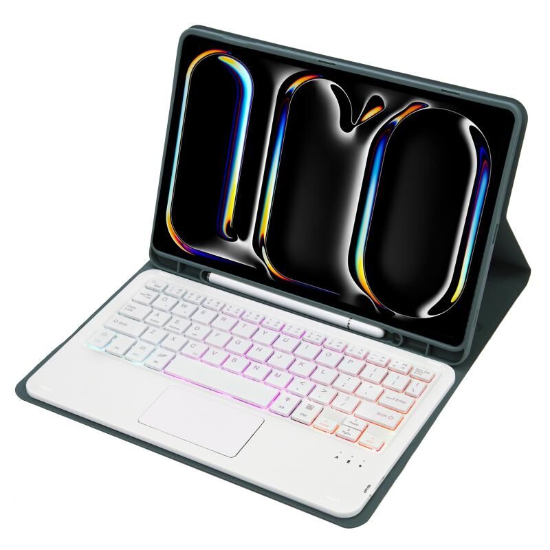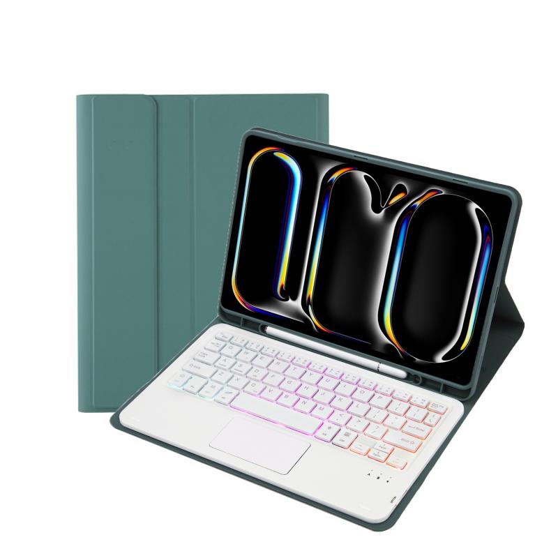 Για iPad Pro 11 2024 A13B-AS Θήκη Tablet από Δέρμα με Υφή Δέρματος Αμνού, Φωτιζόμενο Πληκτρολόγιο Bluetooth με Αφή και Θήκη για Στυλό (Μαύρο)