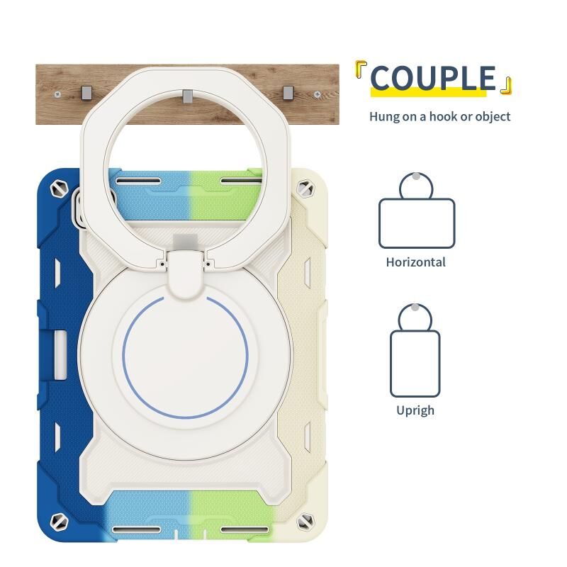 Θήκη tablet σιλικόνης με περιστρεφόμενη βάση δακτυλιδιού και υποδοχή για στυλό για iPad Pro 11 2024, ανθεκτική και φορητή (Ροζ πολύχρωμο)
