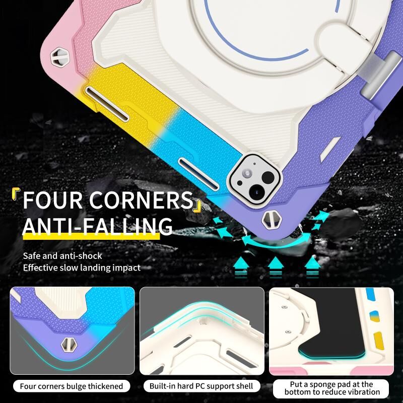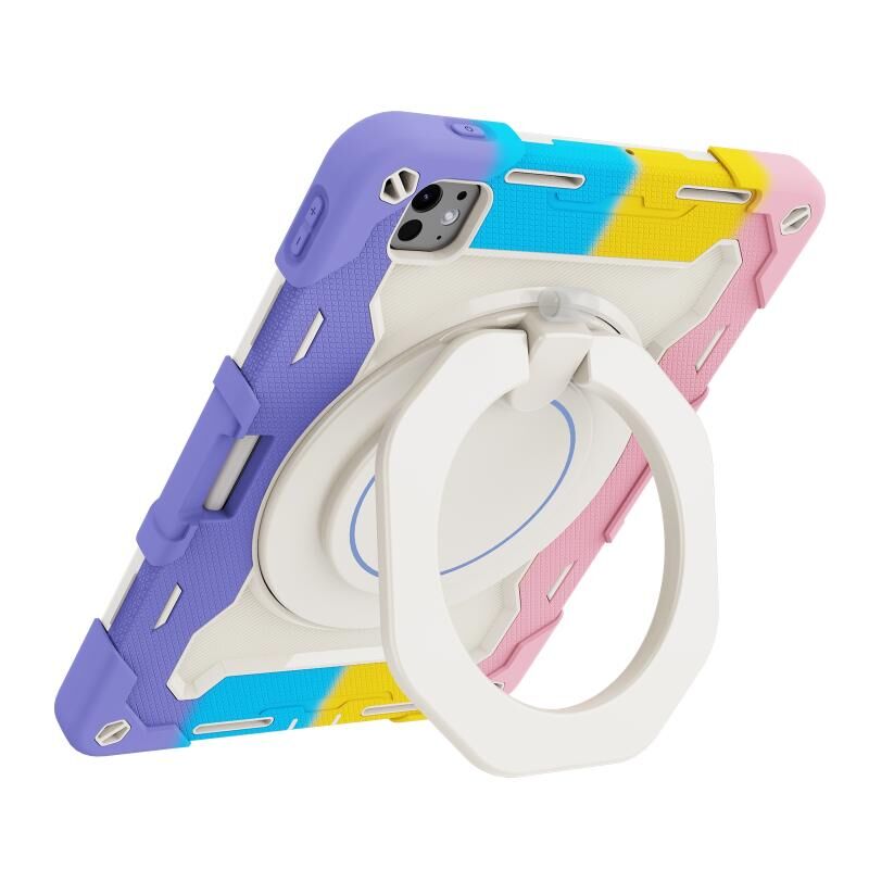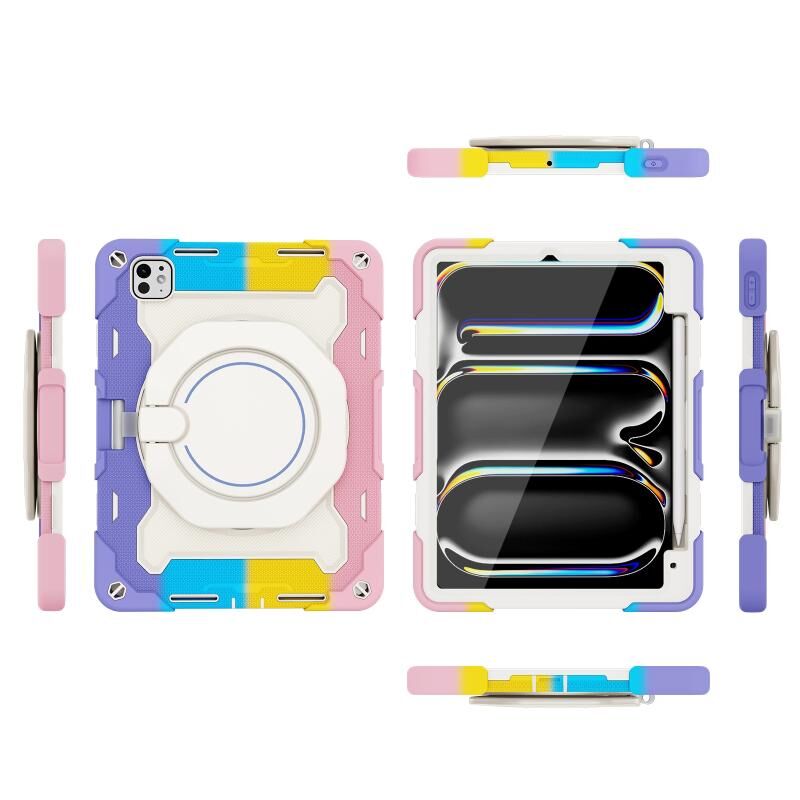 Θήκη tablet σιλικόνης με περιστρεφόμενη βάση δακτυλιδιού και υποδοχή για στυλό για iPad Pro 11 2024, ανθεκτική και φορητή (Ροζ πολύχρωμο)