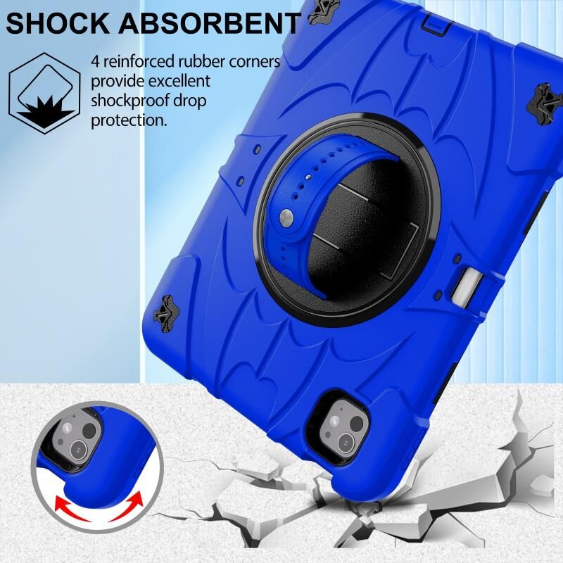 For iPad Pro 11 2024 Bat Hand Grip Turntable Stand Tablet Case(Blue Black)