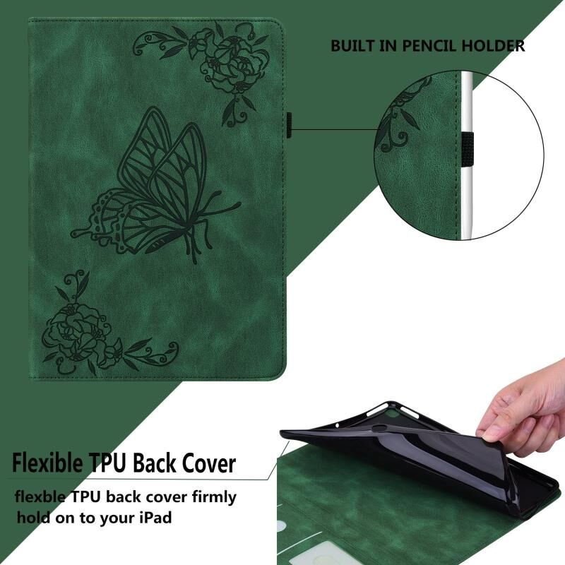 Θήκη Tablet Δερμάτινη με ανάγλυφο σχέδιο πεταλούδας και λουλουδιών για iPad Pro 11 2024 (Πράσινο)