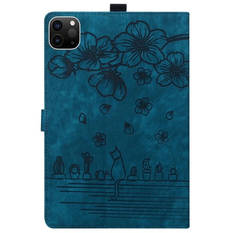 Θήκη Tablet από Δέρμα με Έξυπνη Λειτουργία, με ανάγλυφο σχέδιο καρτούν με άνθη κερασιάς και γάτα για iPad Pro 11 2024 (Κόκκινο Ροζ)