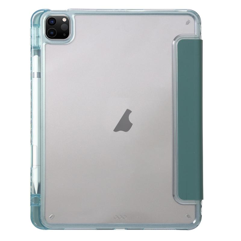 For iPad Pro 11 2024 Clear Acrylic 3-Fold Leather Tablet Case(Dark Green)