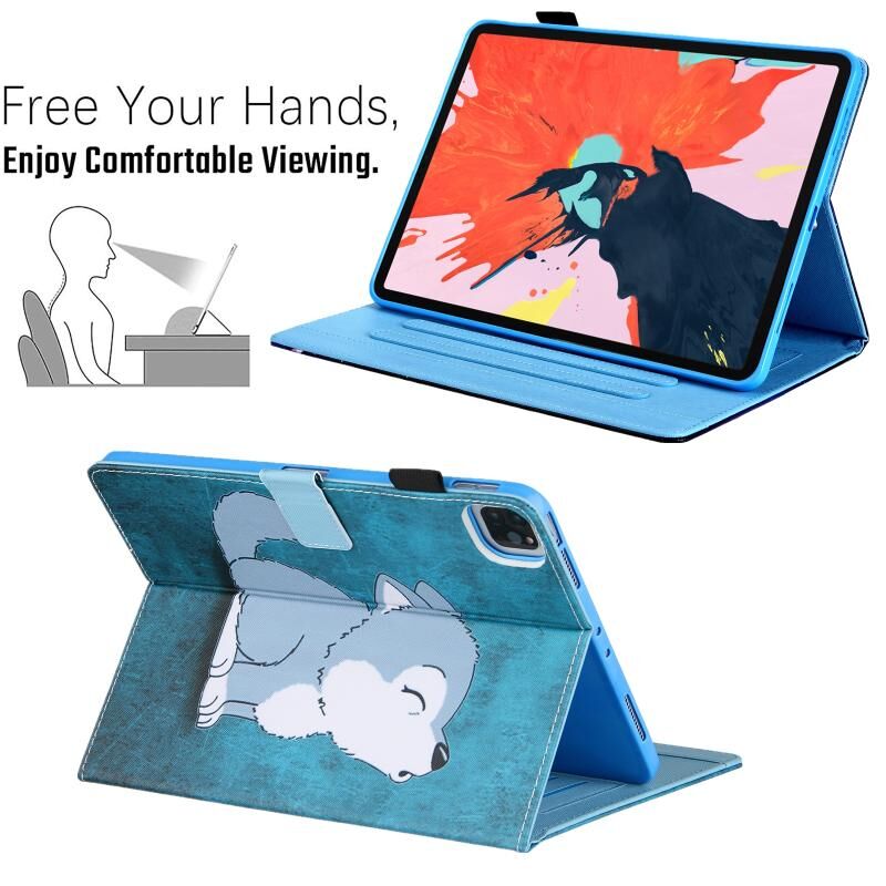 Θήκη Smart Tablet από Δέρμα με Χρωματιστό Σχέδιο για iPad Pro 11 2024 (Χαριτωμένος Λύκος)