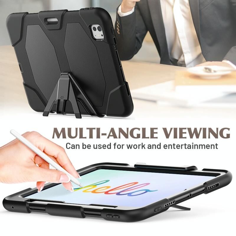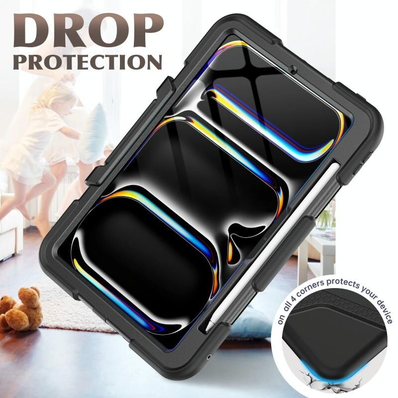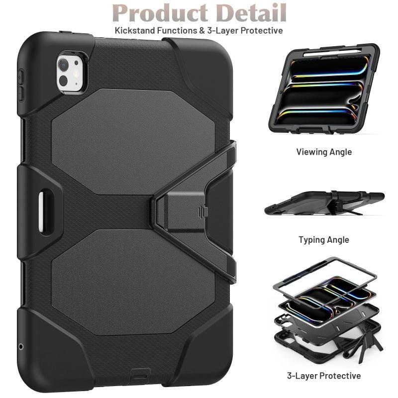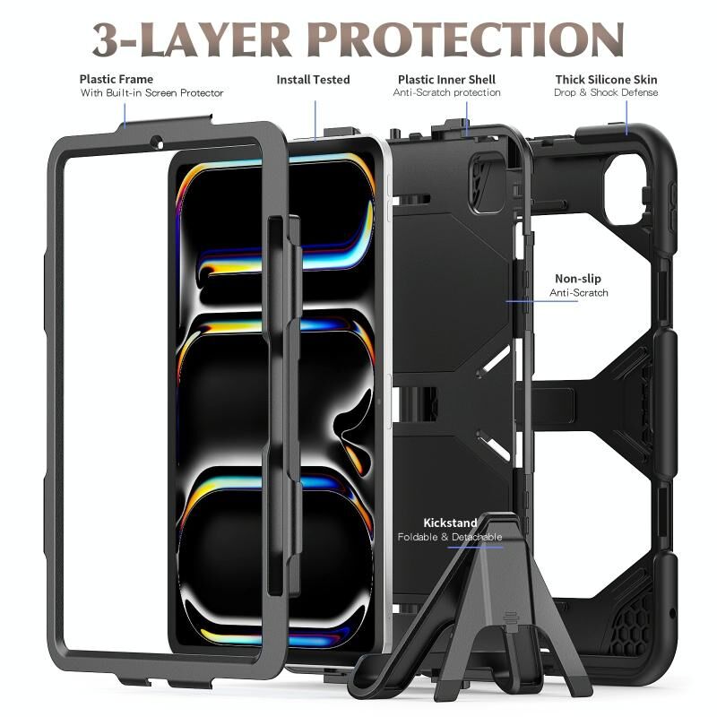 For iPad Pro 11 2024 Colorful Silicone Heavy Duty Hybrid PC Tablet Case(Black)