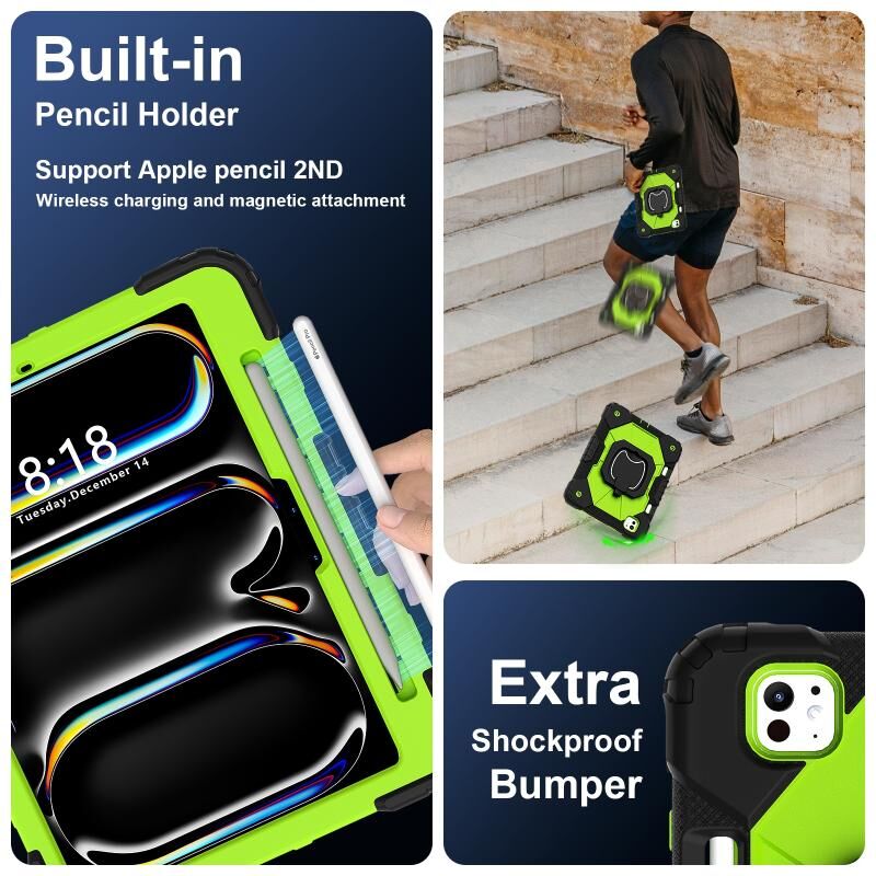 For iPad Pro 11 2024 Contrast Color Robot Silicone Hybrid PC Tablet Case(Black Yellow Green)