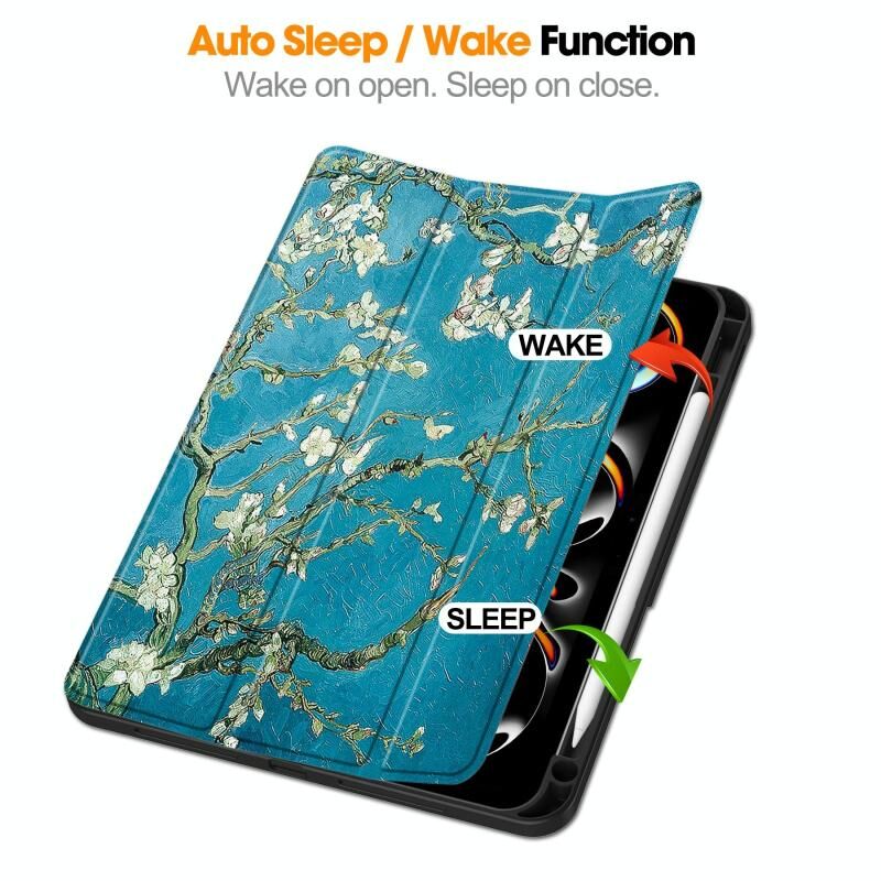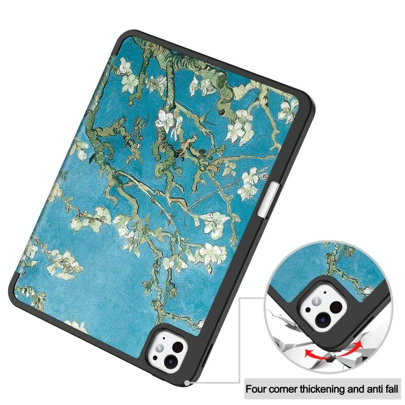 Για iPad Pro 11 2024 Θήκη Ταμπλέτας από Δέρμα με Έξυπνη Δίπτυχη Στήριξη και Θήκη για Στυλό (Λουλούδι Βερίκοκου)