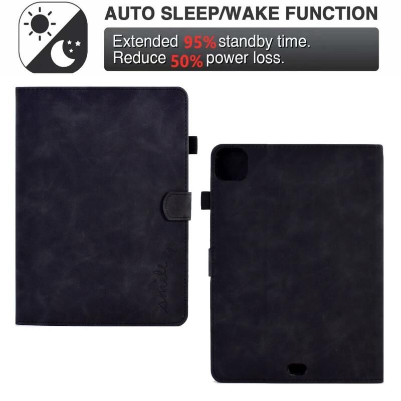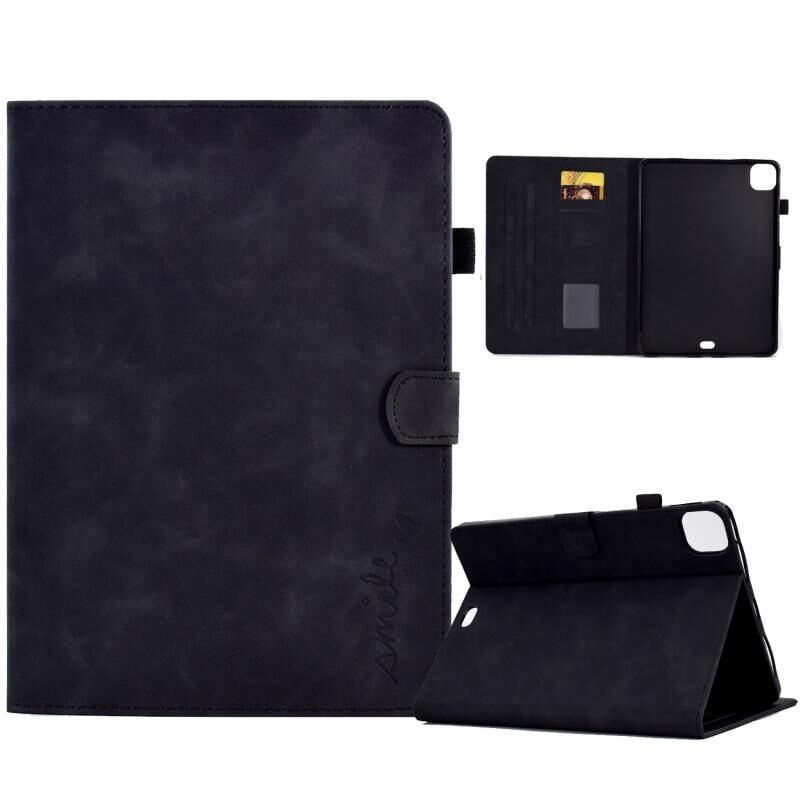 Θήκη δερμάτινη για iPad Pro 11 2024 με ανάγλυφο χαμόγελο και έξυπνη λειτουργία (Μαύρο)