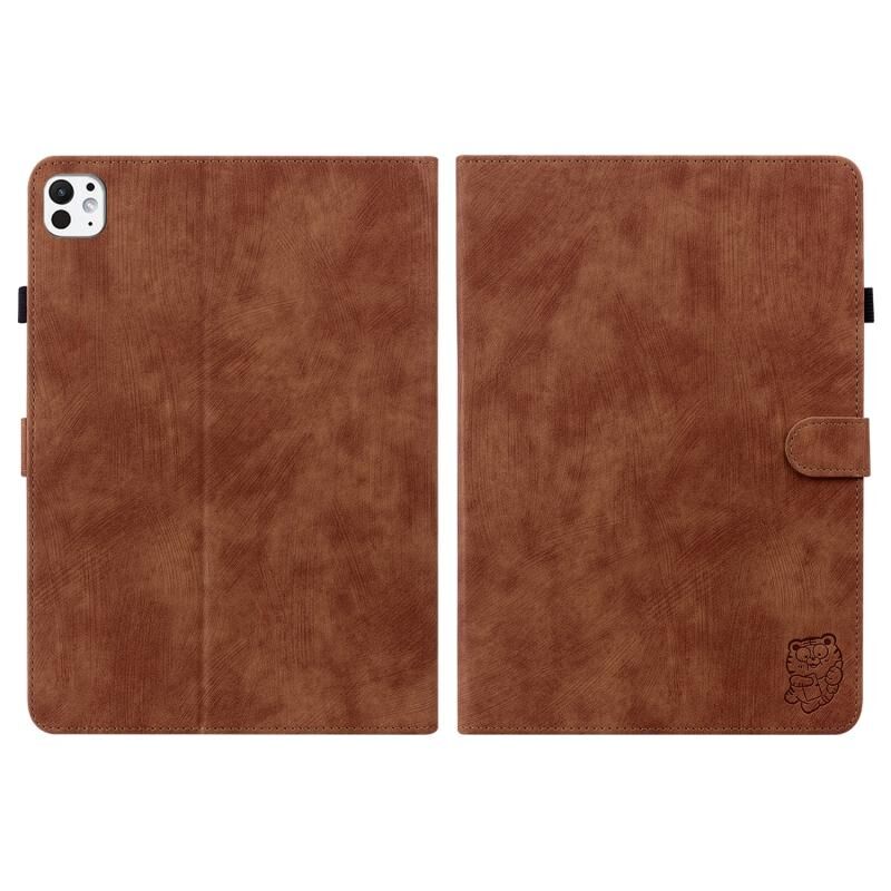 For iPad Pro 11 2024 Embossed Tiger Pattern Leather Tablet Case(Brown)