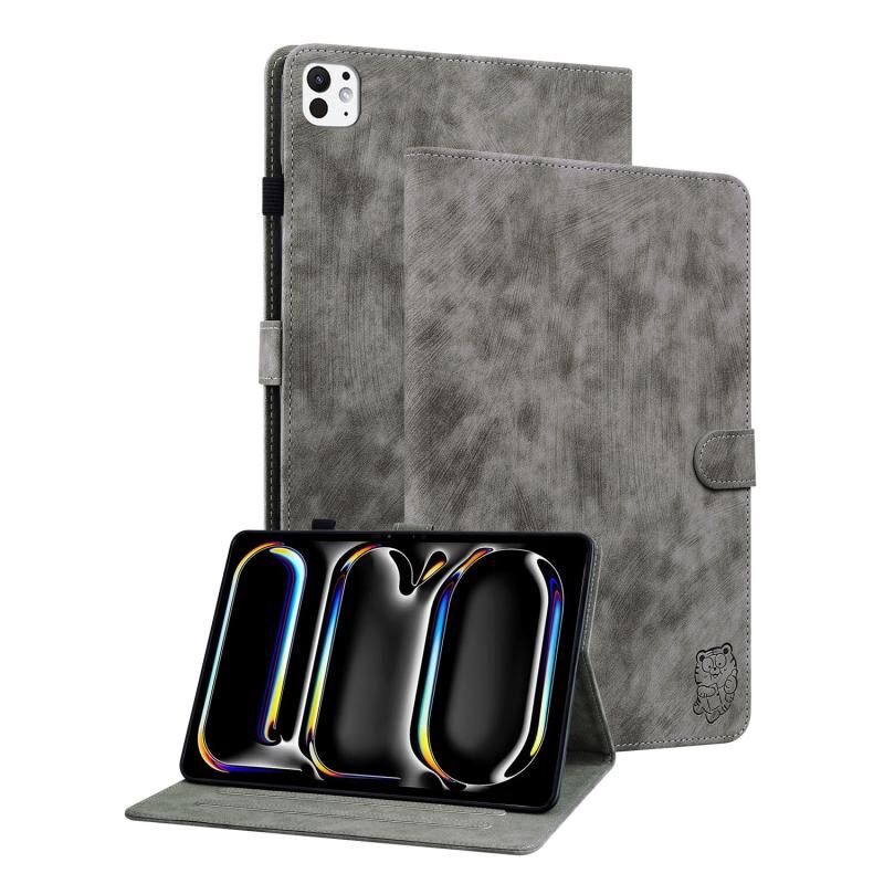 For iPad Pro 11 2024 Embossed Tiger Pattern Leather Tablet Case(Grey)