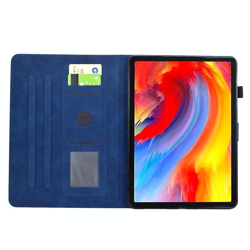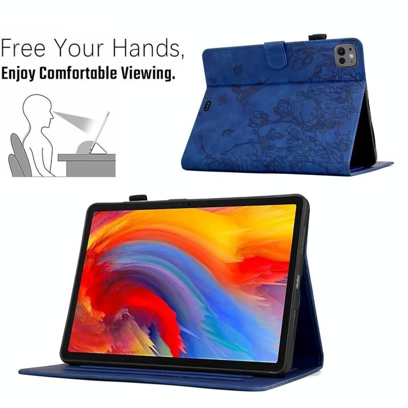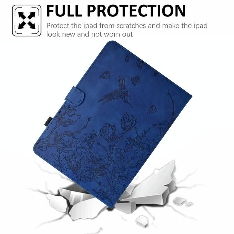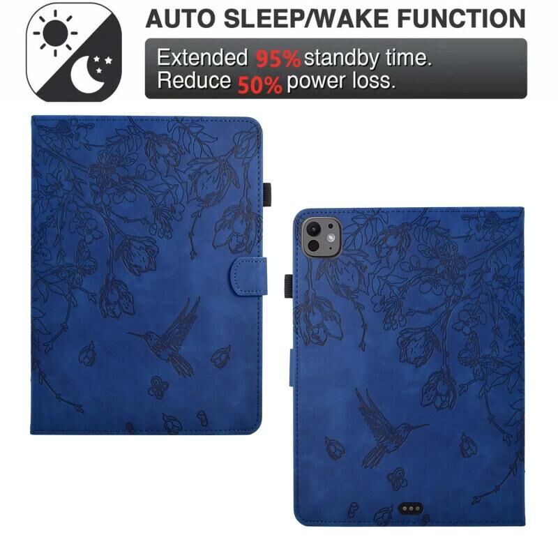 For iPad Pro 11 2024 Flowers and Bird Embossed Smart Leather Tablet Case(Dark Blue)
