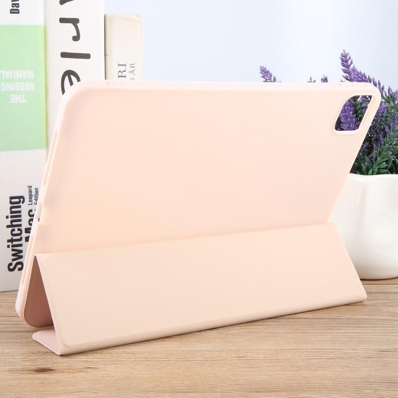 For iPad Pro 11 2024 GEBEI 3-folding Holder Shockproof Flip Leather Tablet Case(Pink) (GEBEI)
