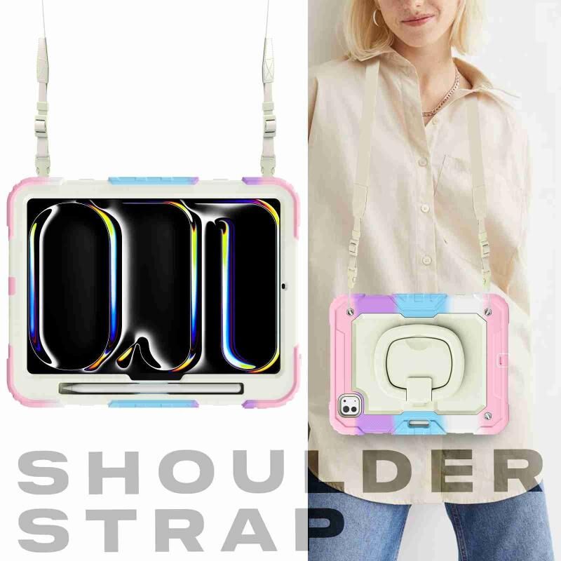 Θήκη για iPad Pro 11 2024, Σιλικόνη Υδρική PC με Λουρί Ώμου (Μαύρο)