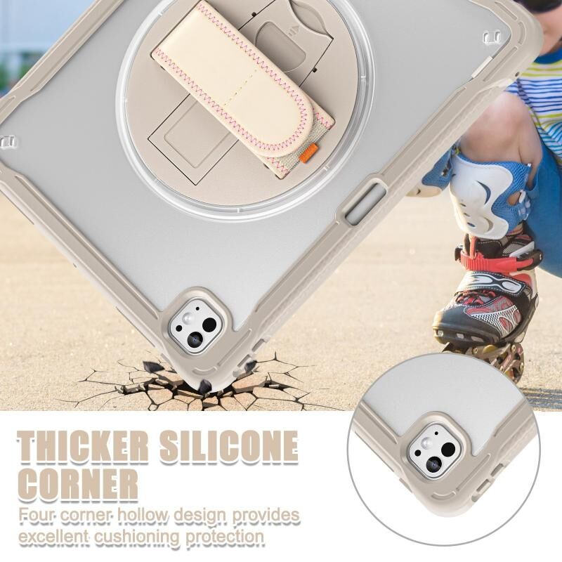 For iPad Pro 11 2024 Heavy Duty Hybrid Tablet Case with Hand Grip & Strap(Khaki)