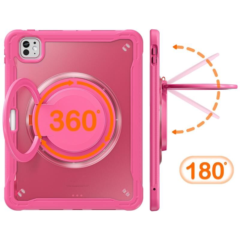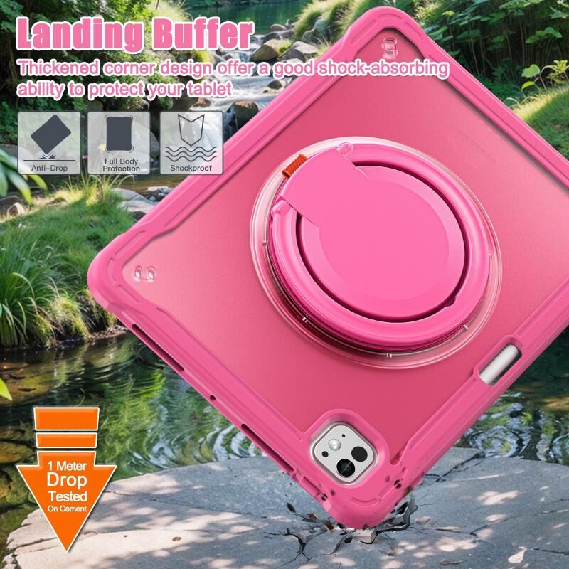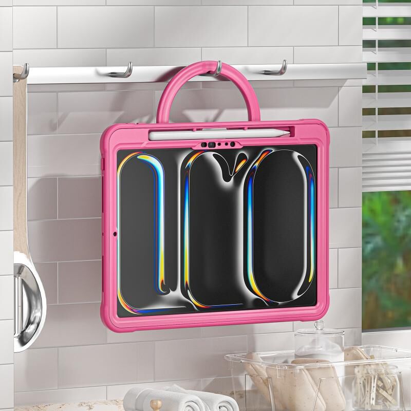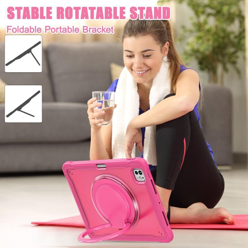 For iPad Pro 11 2024 Heavy Duty Hybrid Tablet Case with Handle & Strap(Rose Red)
