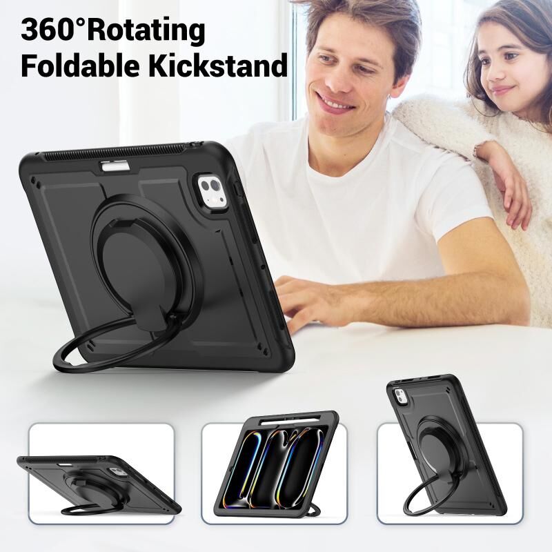 For iPad Pro 11 2024 Honeycomb Hybrid Tablet Case with Handle Holder & Strap(Black)