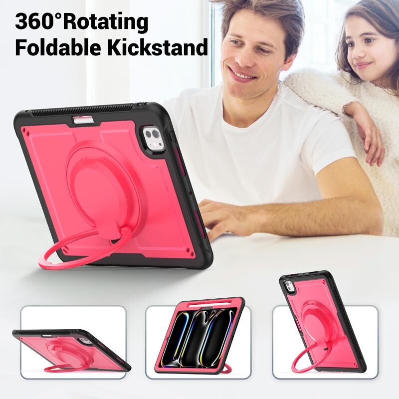 For iPad Pro 11 2024 Honeycomb Hybrid Tablet Case with Handle Holder & Strap(Rose Red)