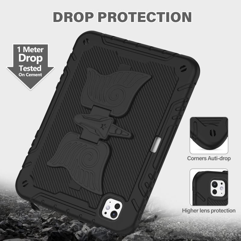 For iPad Pro 11 2024 Kickstand PC Hybrid Silicone Tablet Case with Strap(Black)