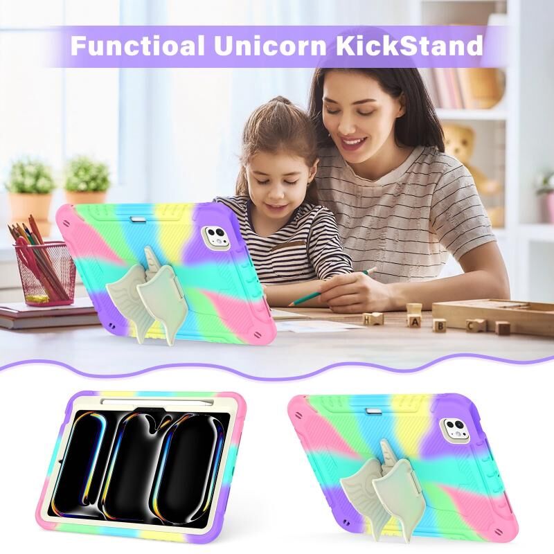 For iPad Pro 11 2024 Kickstand PC Hybrid Silicone Tablet Case with Strap(Colorful Purple)