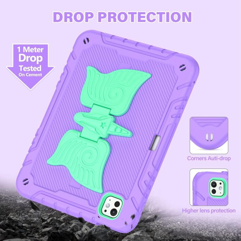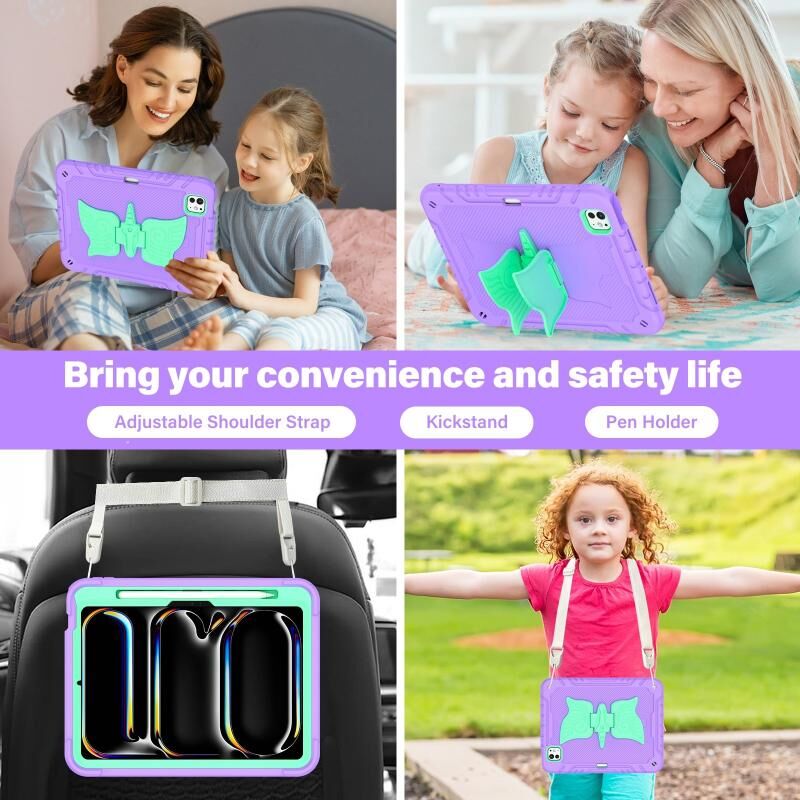 For iPad Pro 11 2024 Kickstand PC Hybrid Silicone Tablet Case with Strap(Purple Mint)