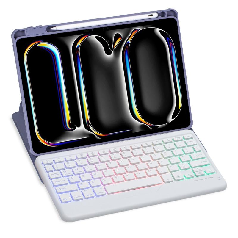 For iPad Pro 11 2024 L13-BS 360 Rotation Acrylic Transparent Bluetooth Keyboard Leather Case with Backlight(Purple)