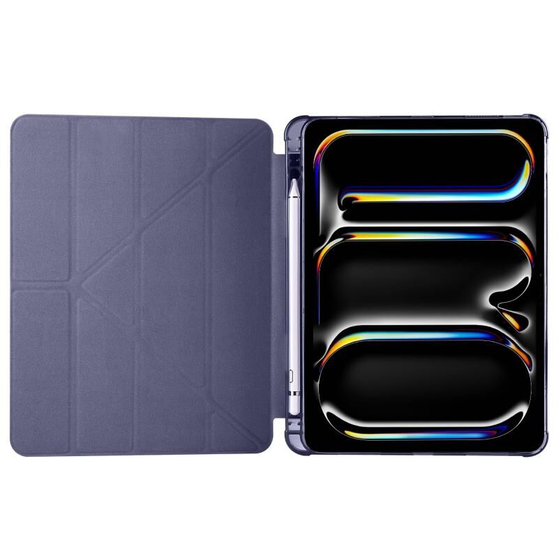 For iPad Pro 11 2024 Multi-folding TPU Leather Smart Tablet Case with Pen Slot(Lavender Purple)