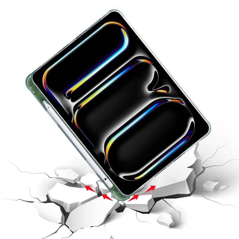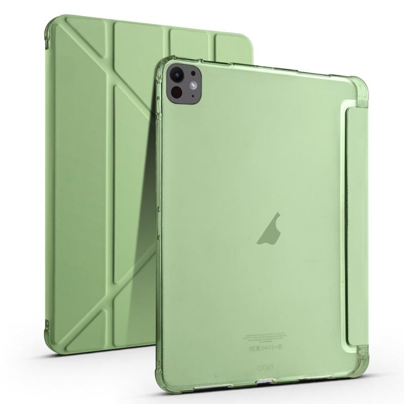 For iPad Pro 11 2024 Multi-folding TPU Leather Smart Tablet Case with Pen Slot(Matcha Green)