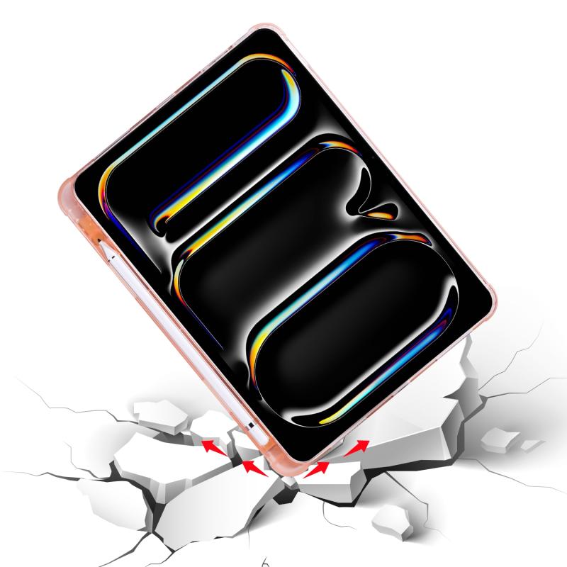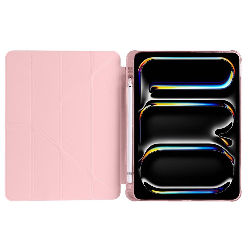 For iPad Pro 11 2024 Multi-folding TPU Leather Smart Tablet Case with Pen Slot(Pink)