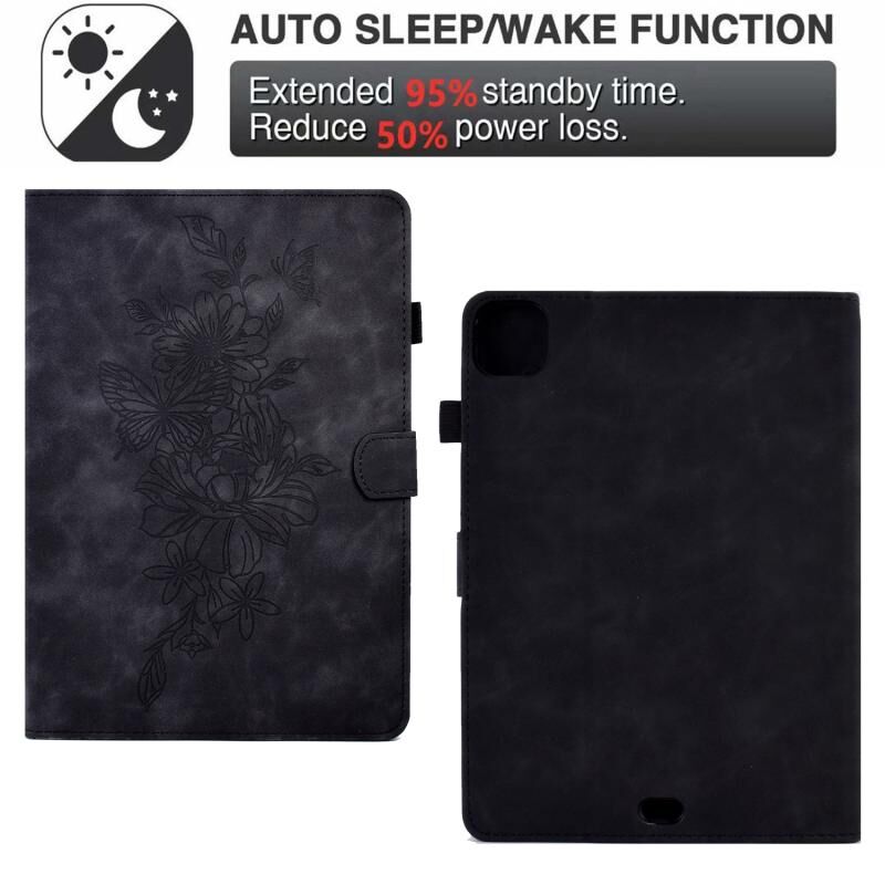 Θήκη Smart Tablet από Δέρμα με ανάγλυφο σχέδιο Πεονίας και Πεταλούδας για iPad Pro 11 2024 (Χακί)