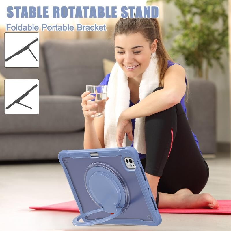 Για iPad Pro 11 2024, Ισχυρή Θήκη Ταμπλέτας Υβριδικού Τύπου με Δαχτυλίδι Sailor και Λουρί (Χακί)