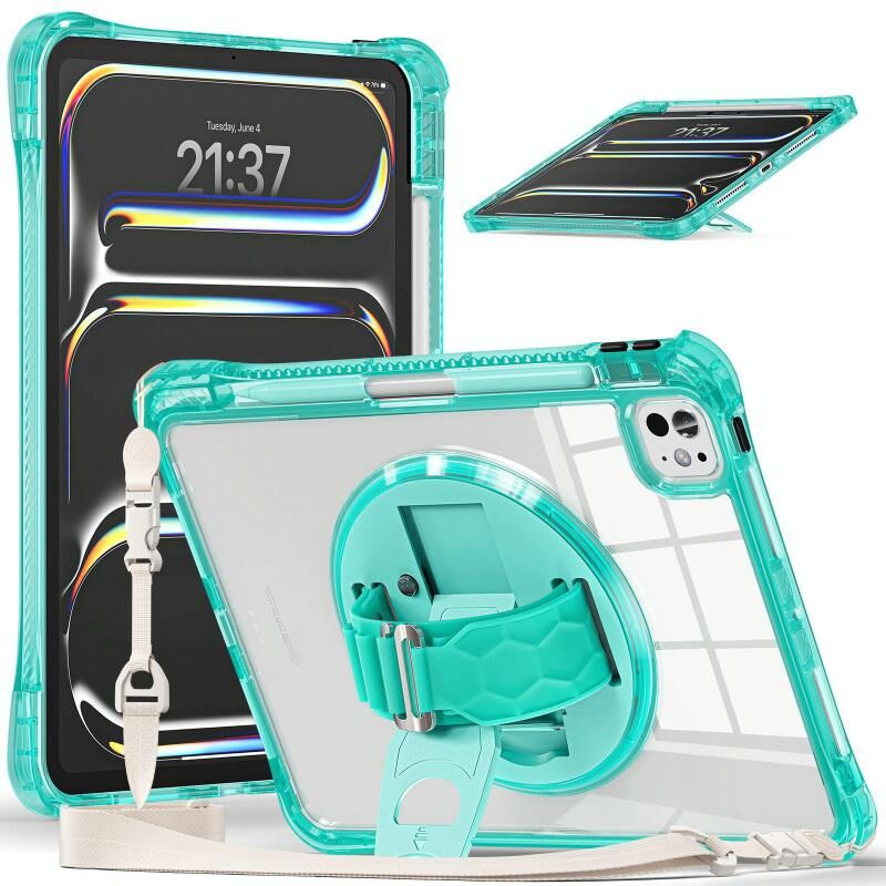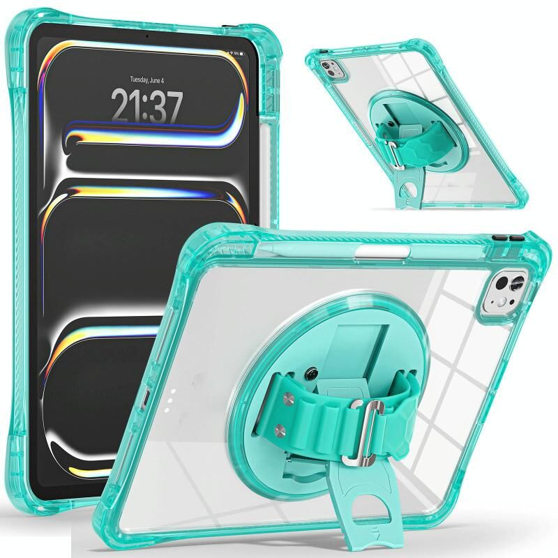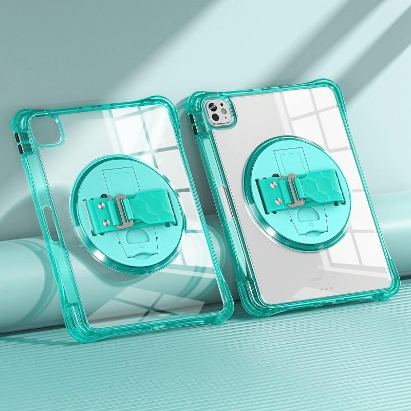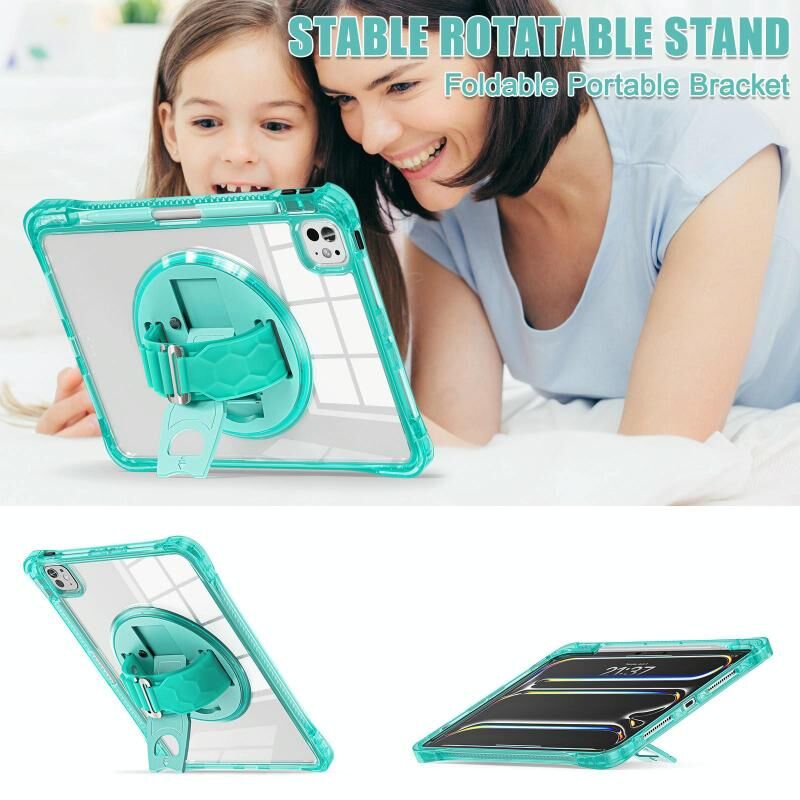 For iPad Pro 11 2024 Rotation Grip Holder TPU Hybrid Clear PC Tablet Case(Light Green)