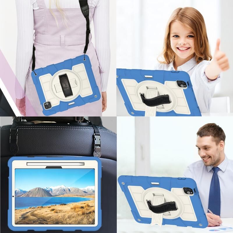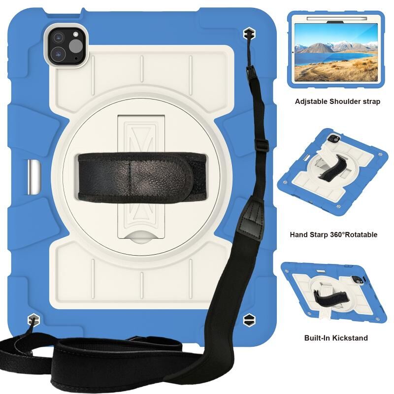 Για iPad Pro 11 2024 Υβριδική θήκη tablet σιλικόνης PC Shockproof με λουράκι ώμου (Azure Blue)