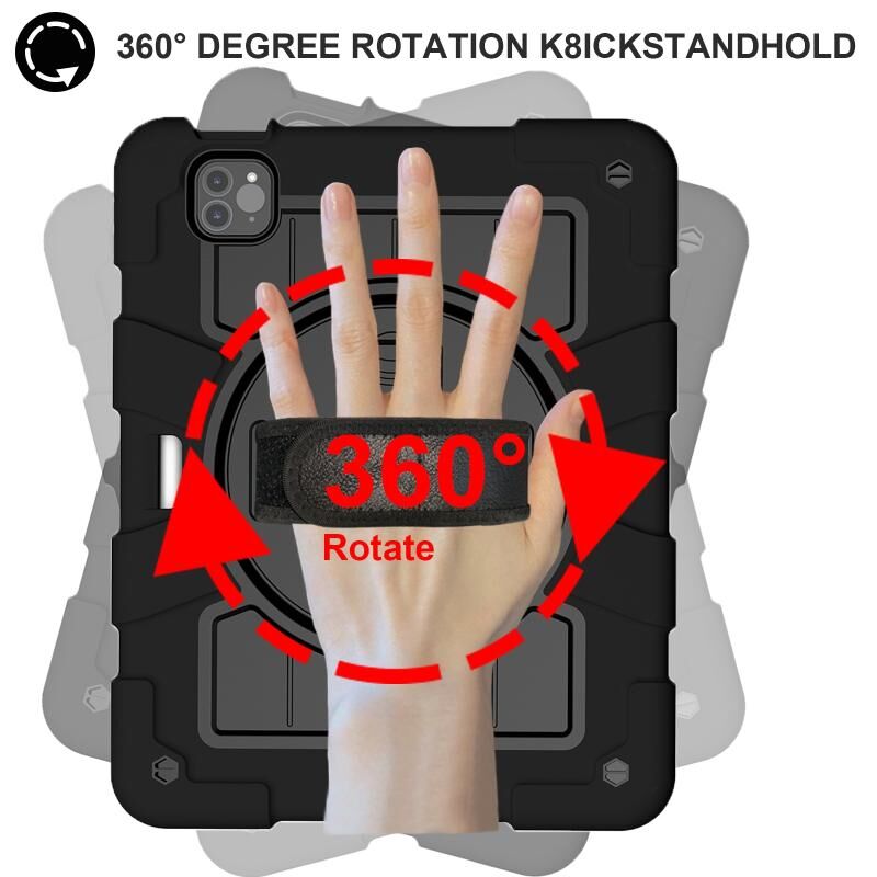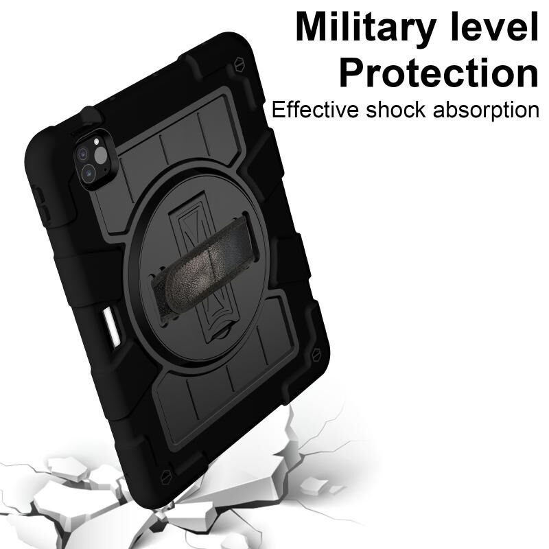 For iPad Pro 11 2024 Silicone Hybrid PC Shockproof Tablet Case with Shoulder Strap(Black)