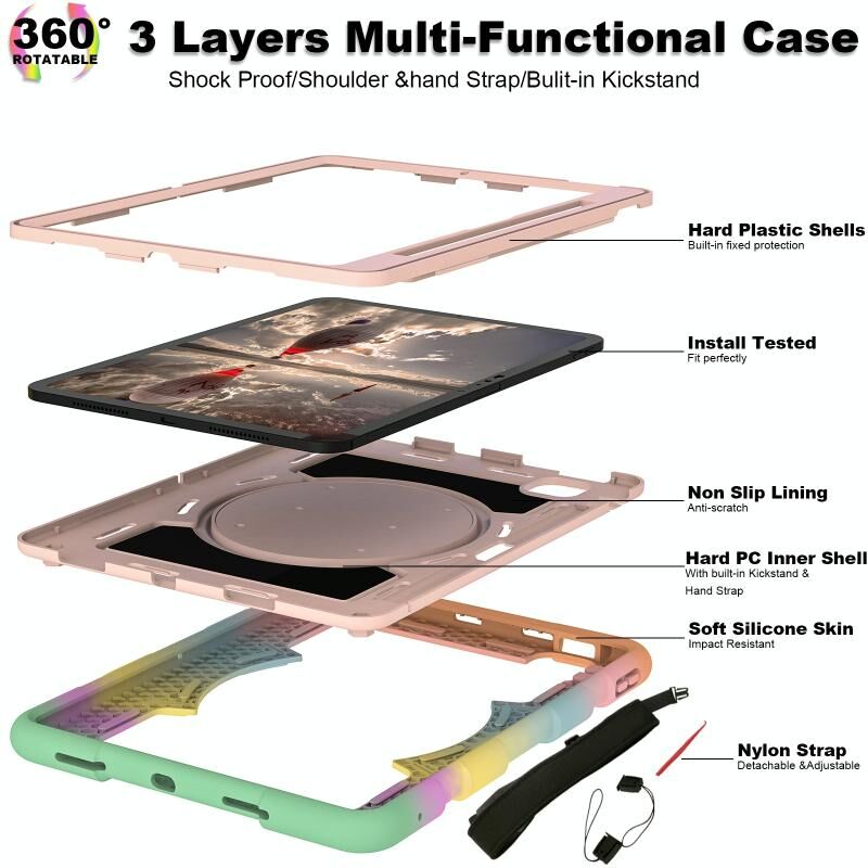 Για iPad Pro 11 2024 Υβριδική θήκη tablet σιλικόνης PC Shockproof με λουράκι ώμου (πολύχρωμο χρυσό)
