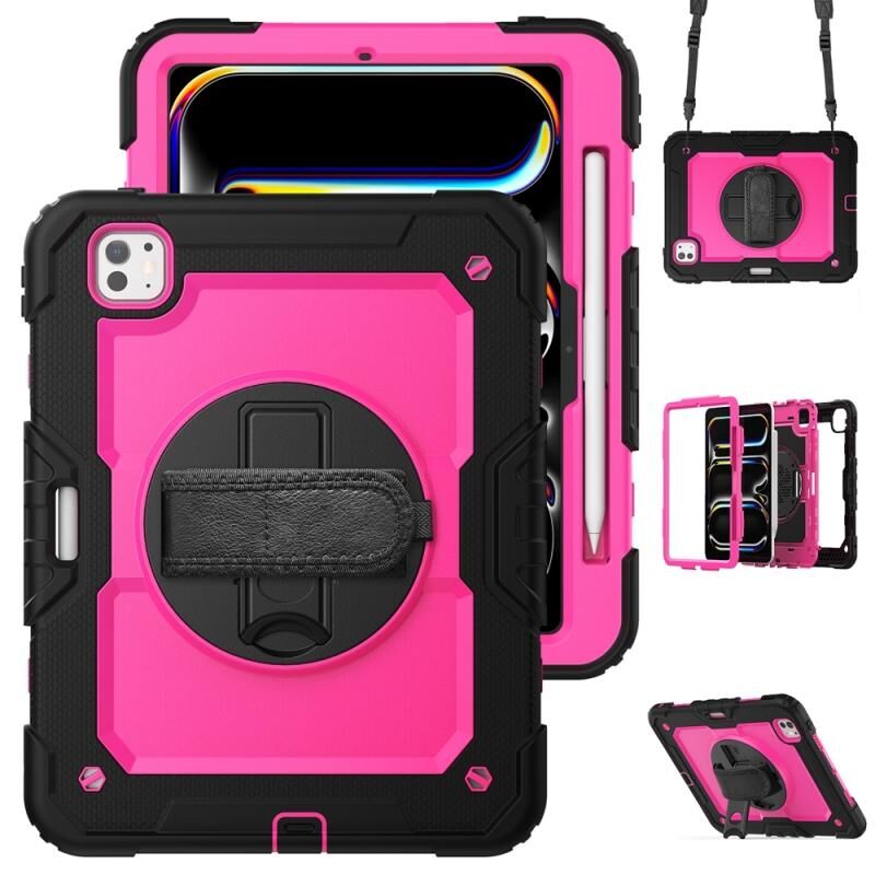 For iPad Pro 11 2024 Silicone Hybrid PC Tablet Protective Case(Rose Red+Black)