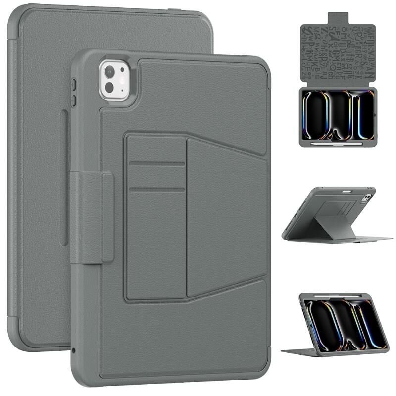 For iPad Pro 11 2024 Smart B Magnetic Holder Leather Tablet Case(Grey)