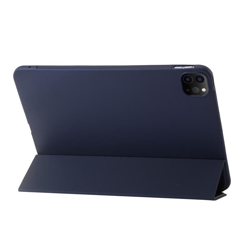 For iPad Pro 11 2024 Three-fold Holder Flip Tablet Leather Case(Dark Blue)