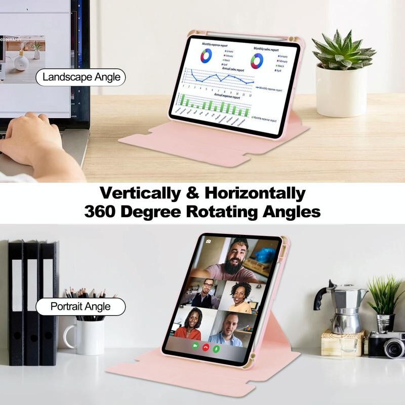 2. 360 Rotation Stand: Stand function, flip cover which can be folded back to be a stand holder to make watching videos more convenient.