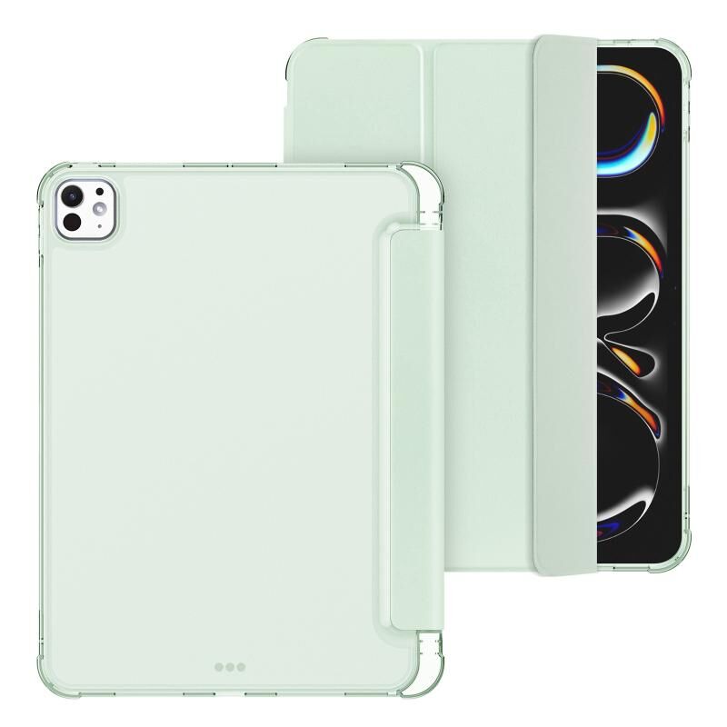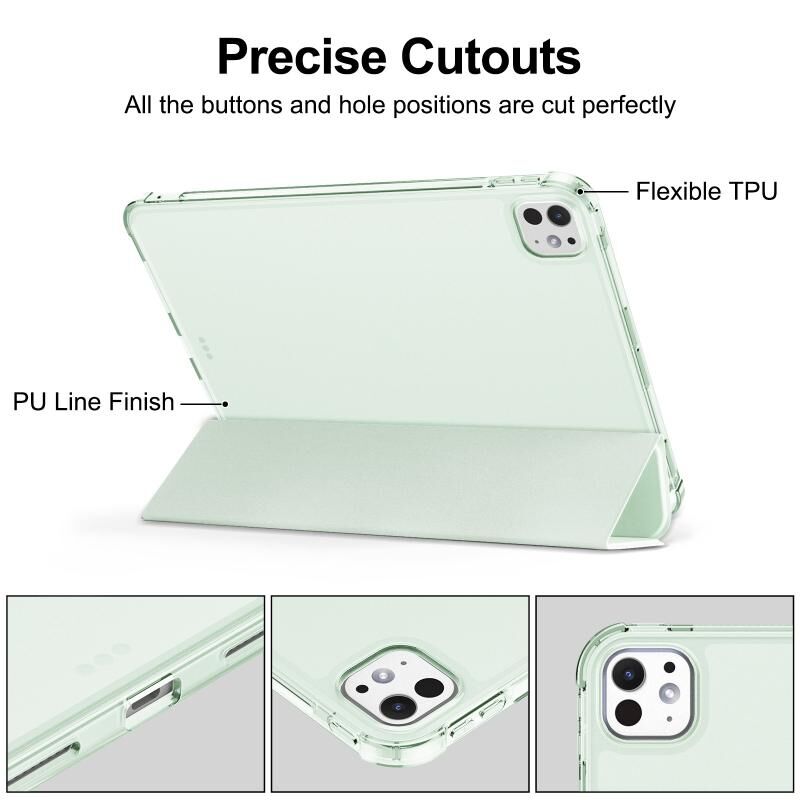Για iPad Pro 11 2024 Τριπλή Θήκη Στήριξης από TPU με Ματ Δέρμα και Λειτουργία Αυτόματης Αφύπνισης, με Θήκη για Στυλό (Μαύρο)